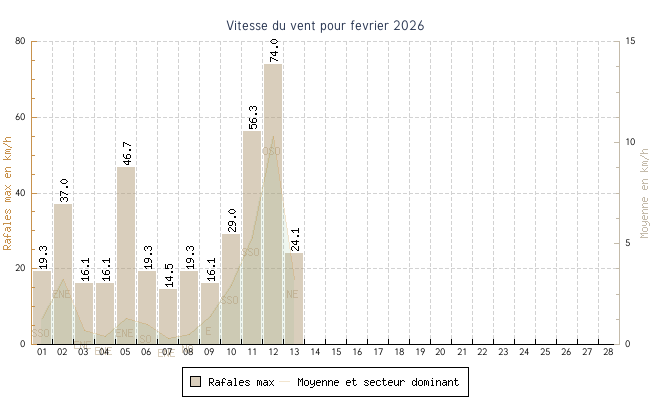 | 01 | 7.4 °C | 13.3 °C | 10.3 °C | 1.3 km/h (19.3 km/h) | SSO |