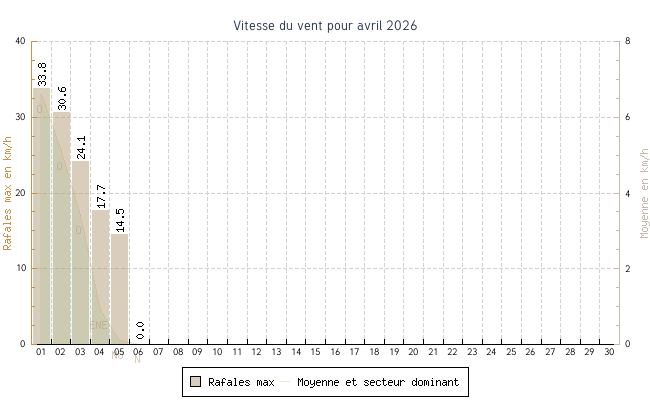 | min | max | moy | Vitesse (rafales) | Secteur | ||